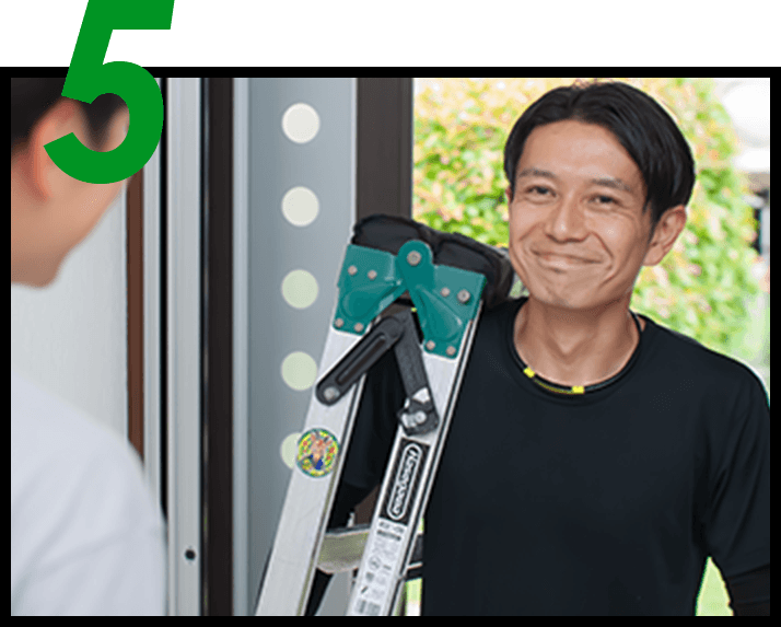 ご自宅に上がる工事だからこそ、身だしなみとマナーを大切にしています。初めての方でも安心してお任せいただけるよう、信頼される対応を心がけています。